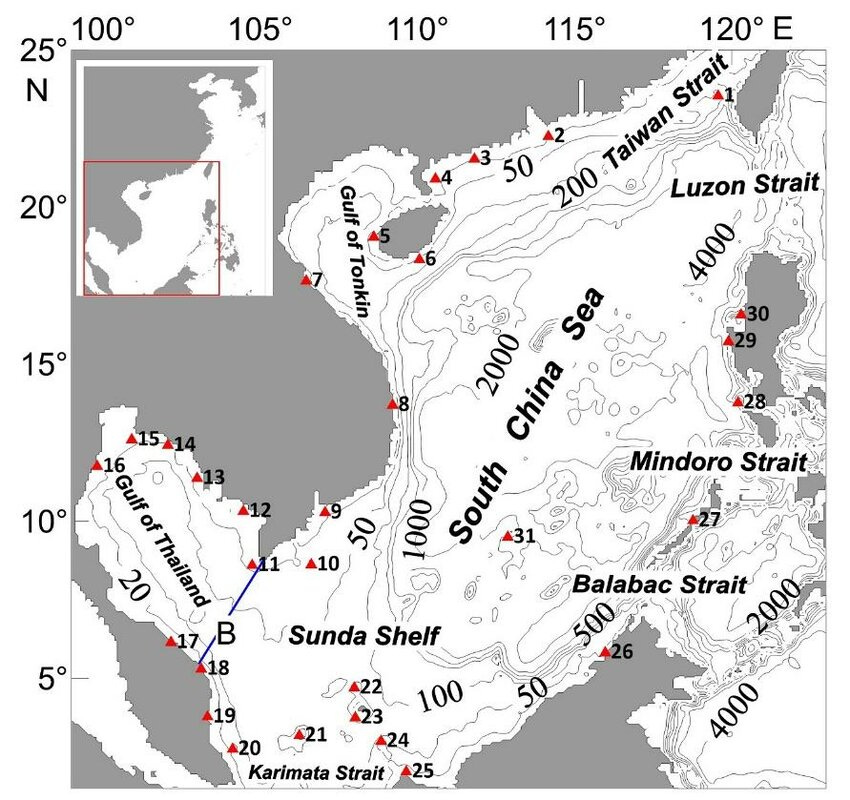 South China Sea depth map in meters (https://www.researchgate.net/figure/The-South-China-Sea-and-its-neighbouring-area-The-contours-show-the-water-depth_fig4_367117621)